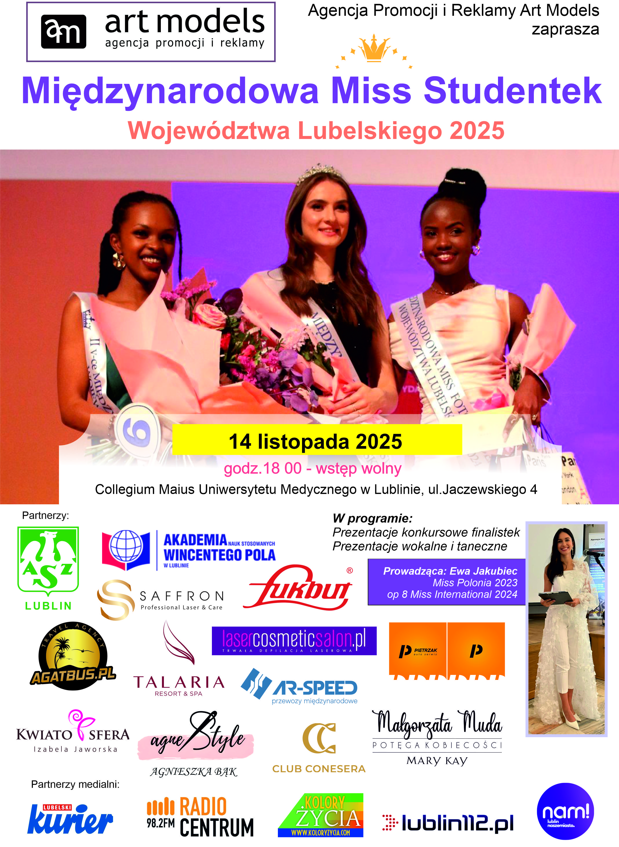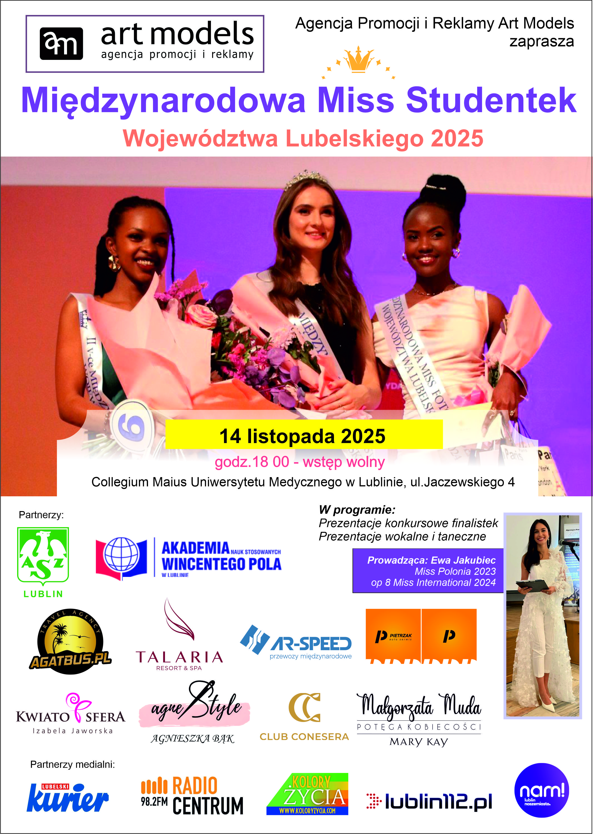 Agencja Promocji i Reklamy Art Models Ogłasza casting do konkursu Międzynarodowa Miss Studentek Województwa Lubelskiego 2025.